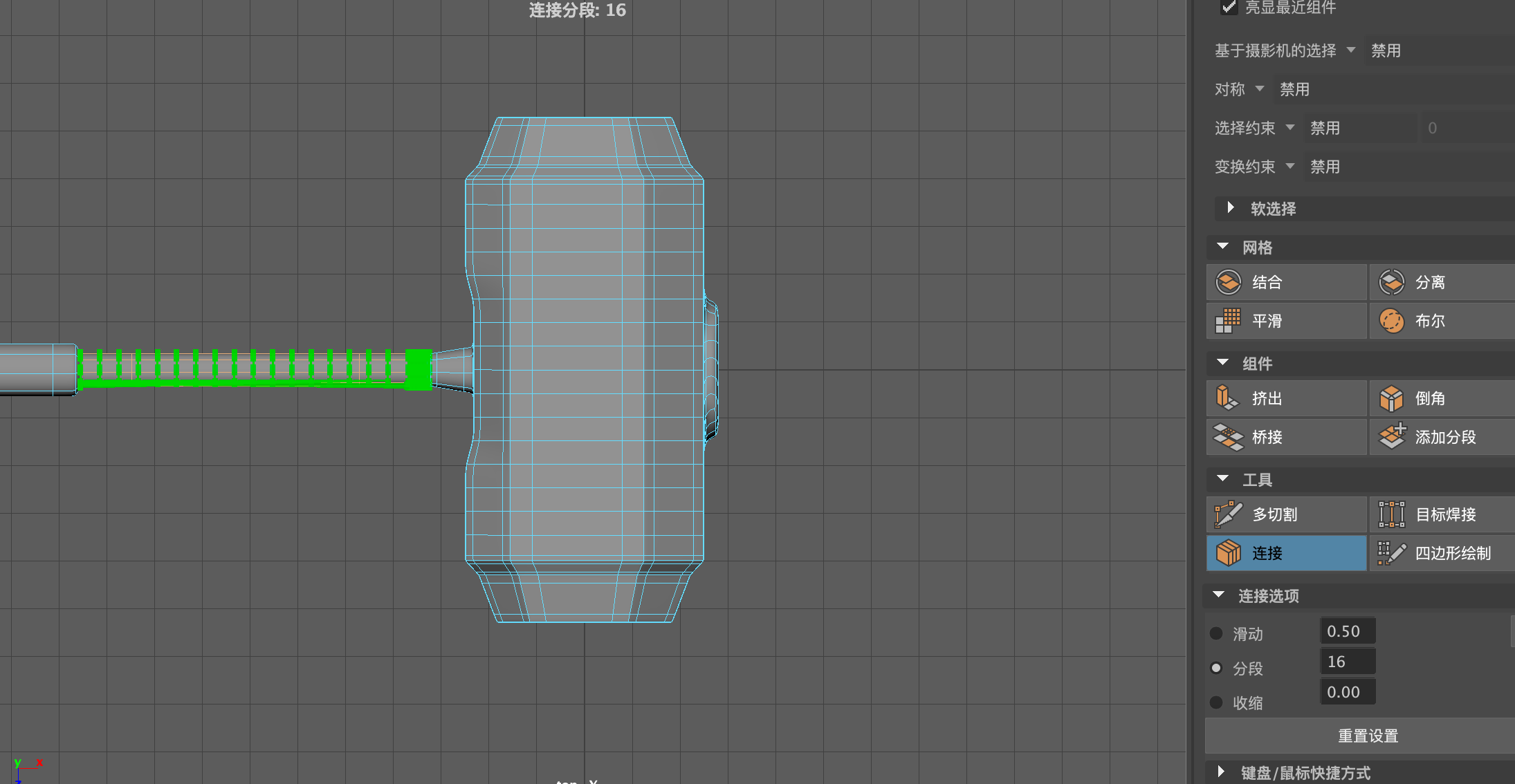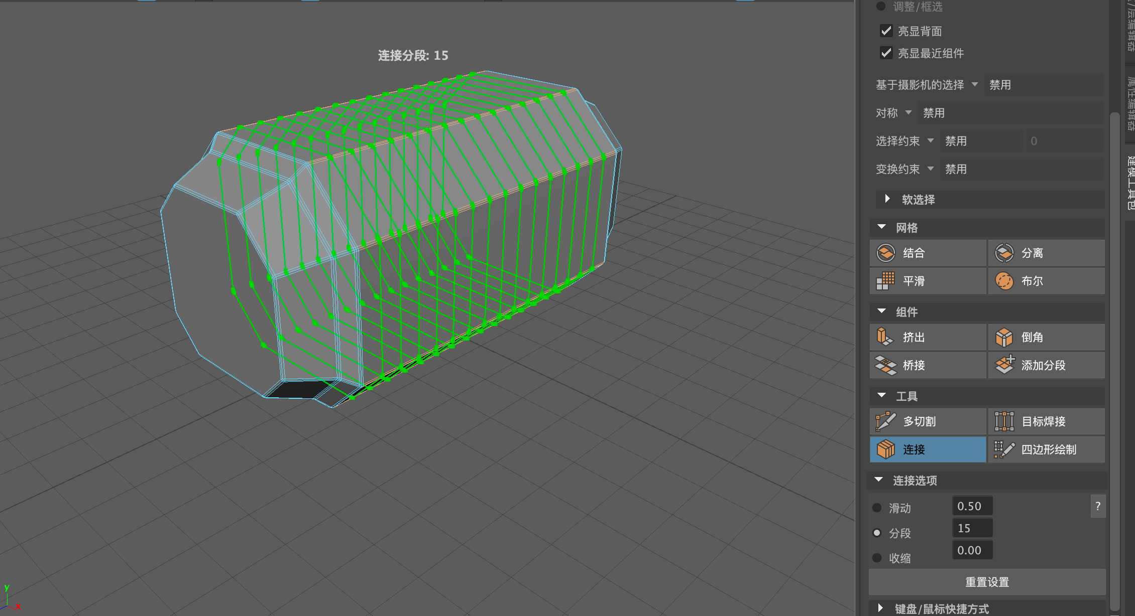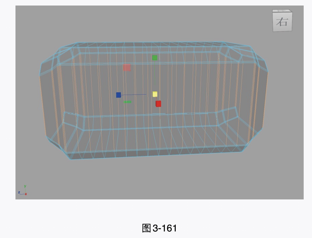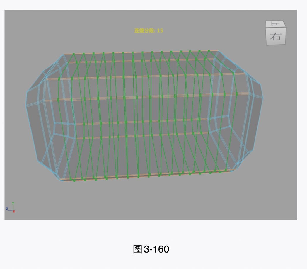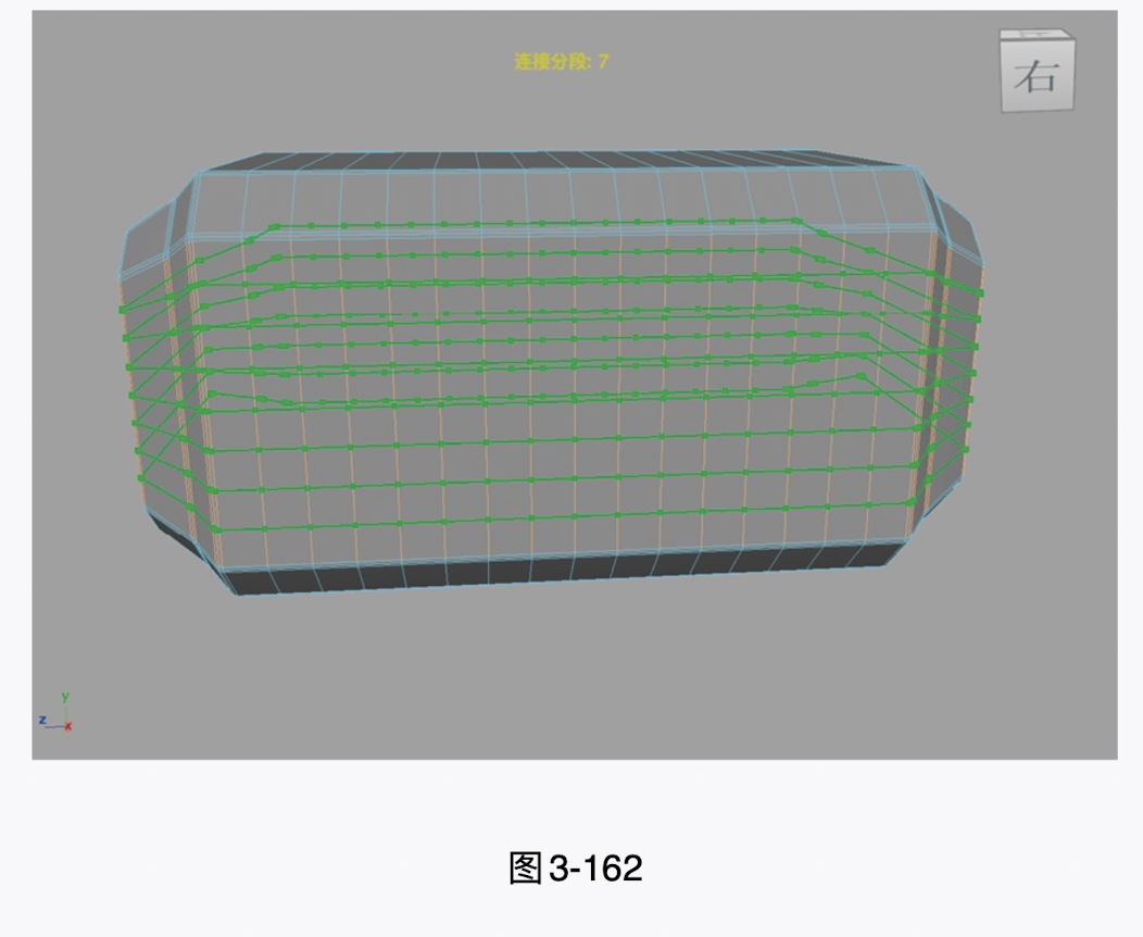 (9)选择图3-161所示的边,再次使用"连接"工具为模型增加边,如图3-162所示。