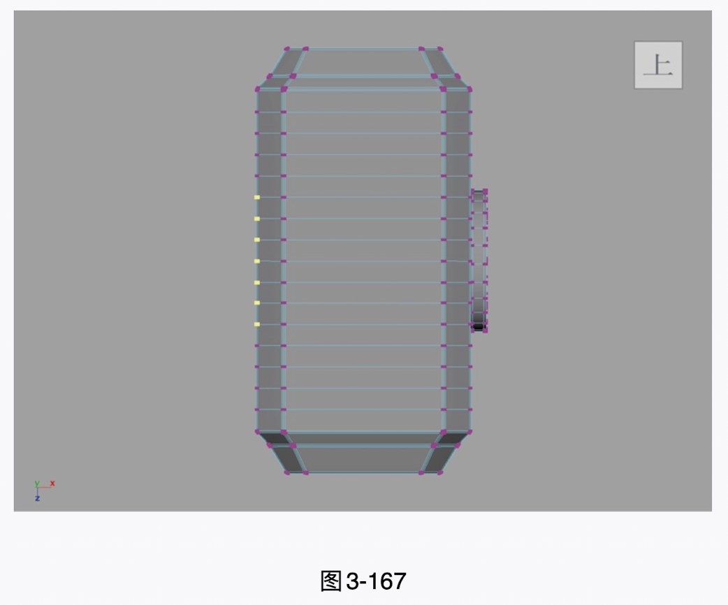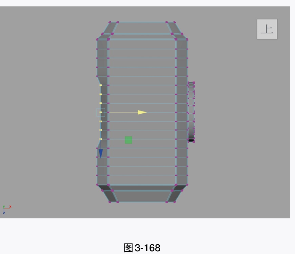 (13)在"顶视图"中,选择图3-167所示的顶点,使用"移动工具"对其微调,制作出图3-168所示的模型。