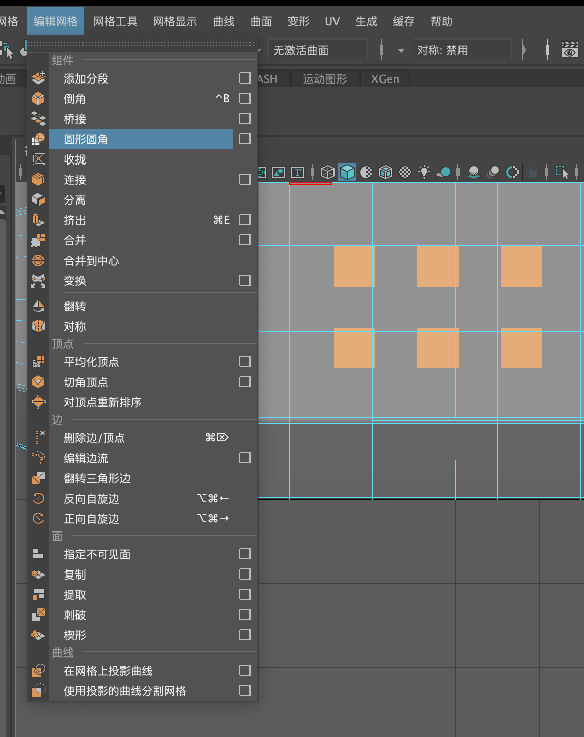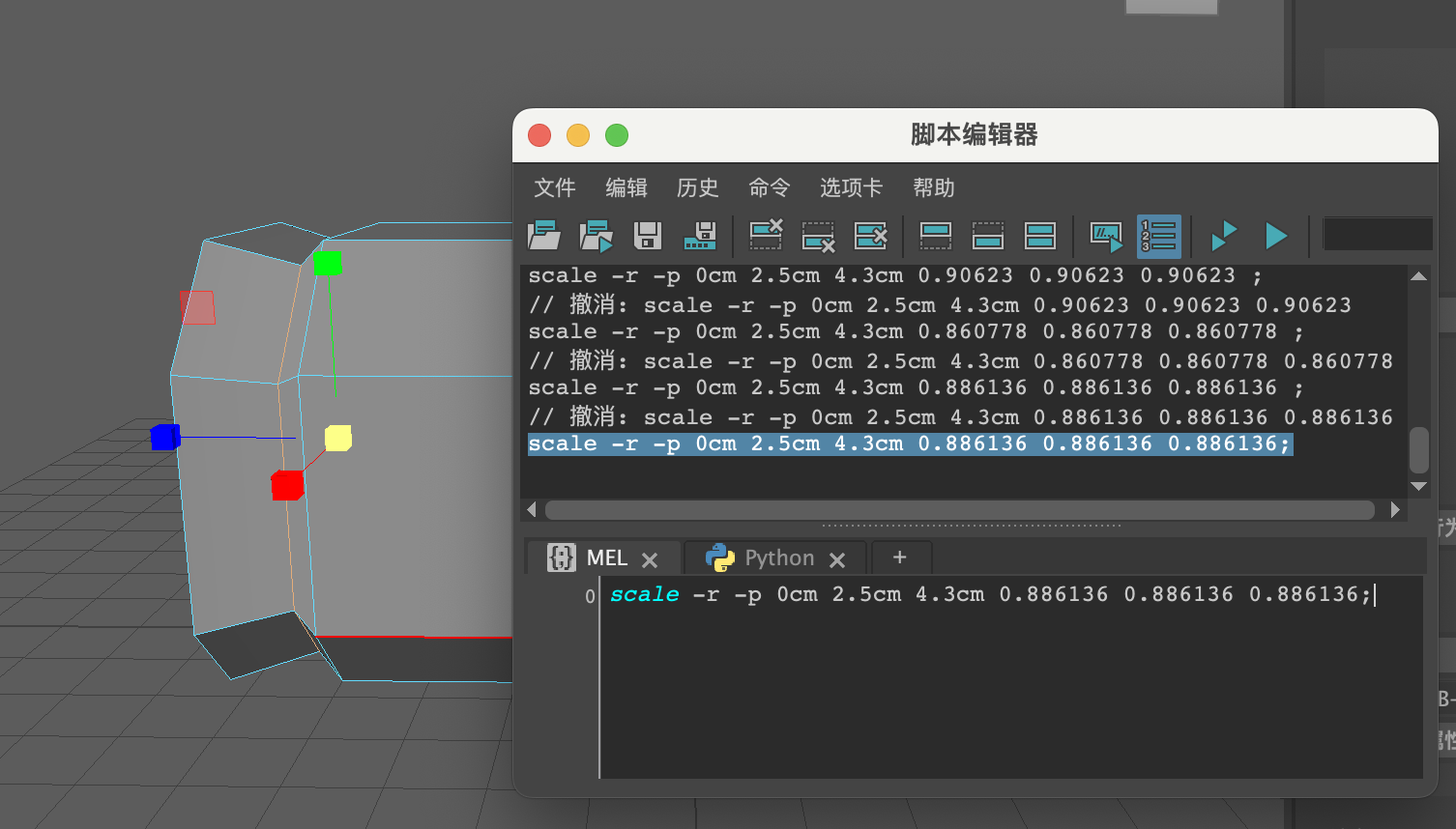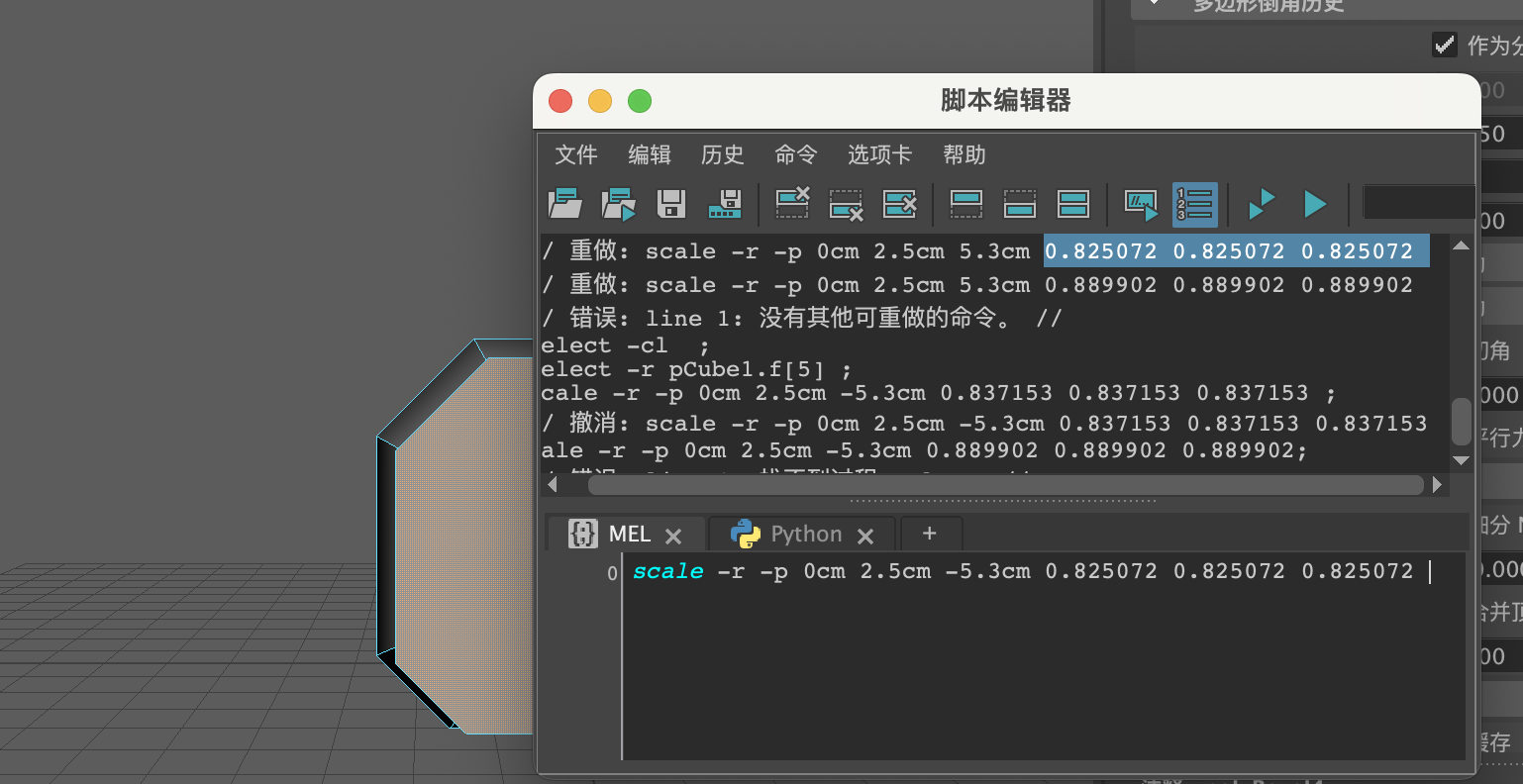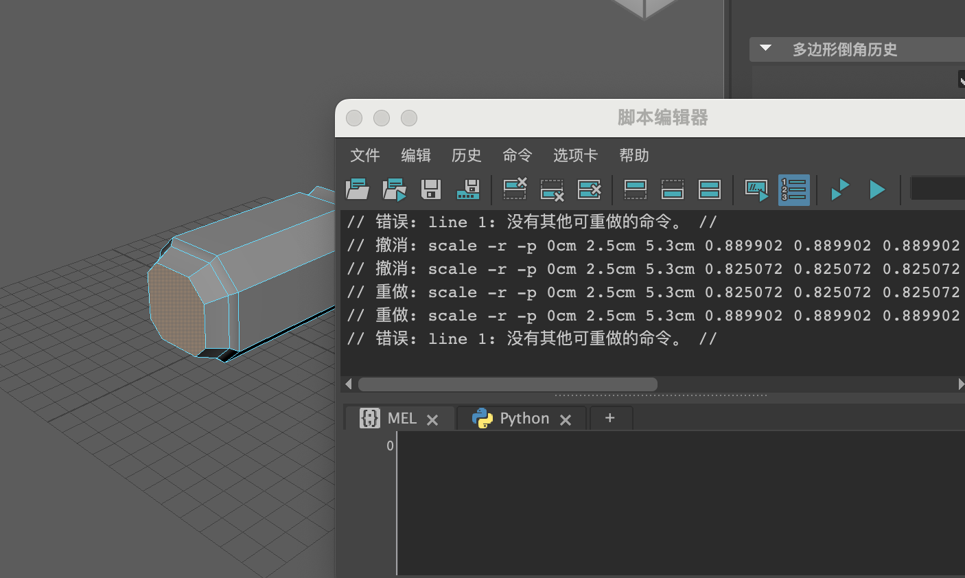 (1)启动中文版Maya 2024软件,单击"多边形建模"工具架上的"多边形立方体"图标,在场景中创建一个长方体模型。(2)在"通道盒/层编辑器"面板中,设置长方体的参数值