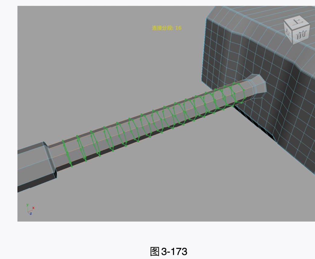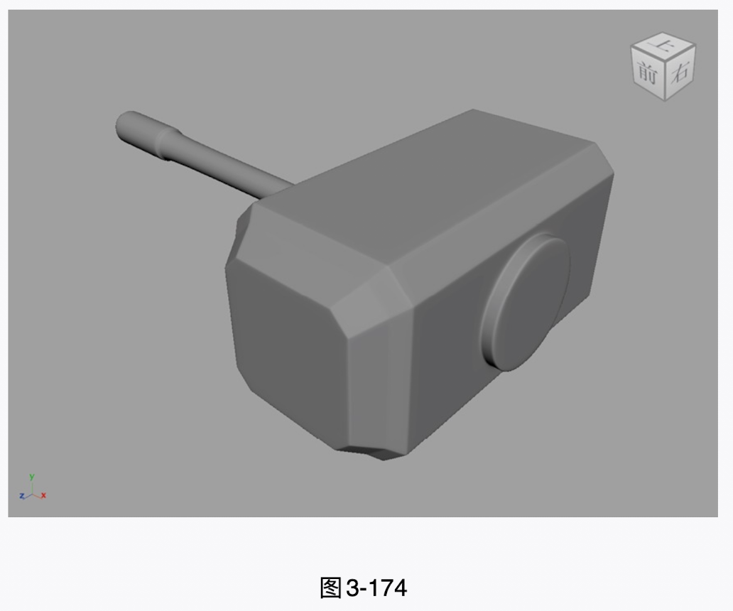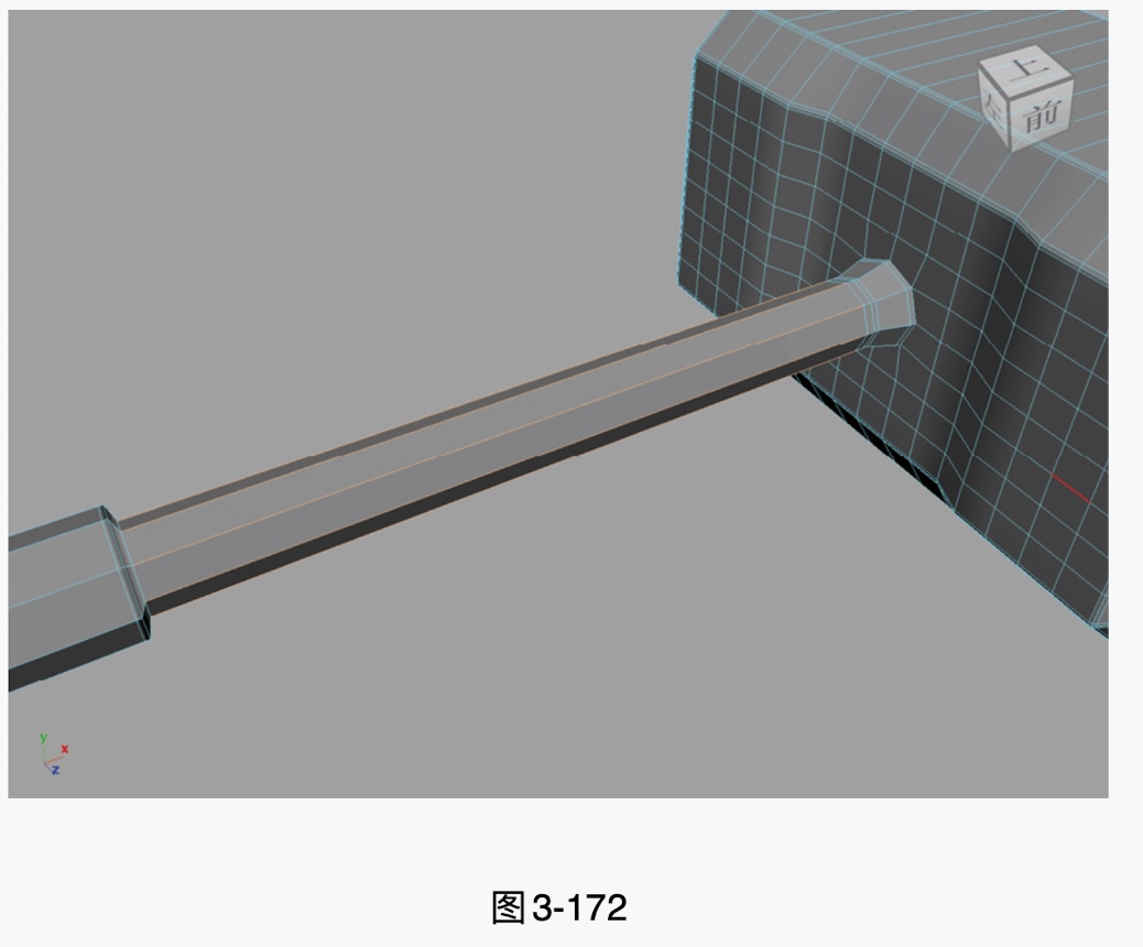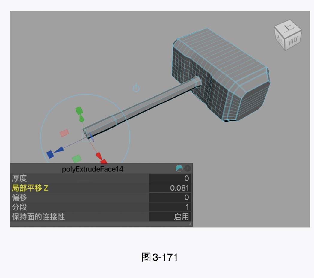 (15)对所选择的面使用"挤出"工具进行多次挤出操作,并配合"缩放工具",制作出锤子的手柄结构,如图3-171所示。