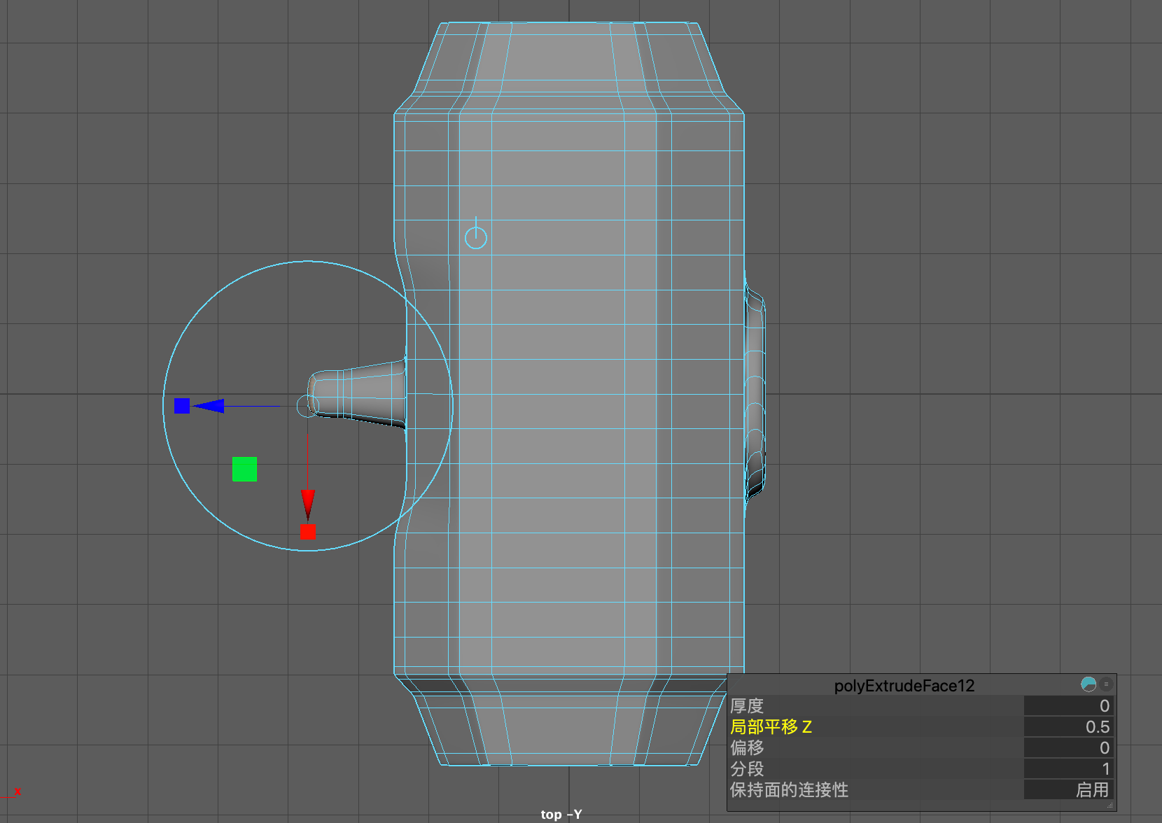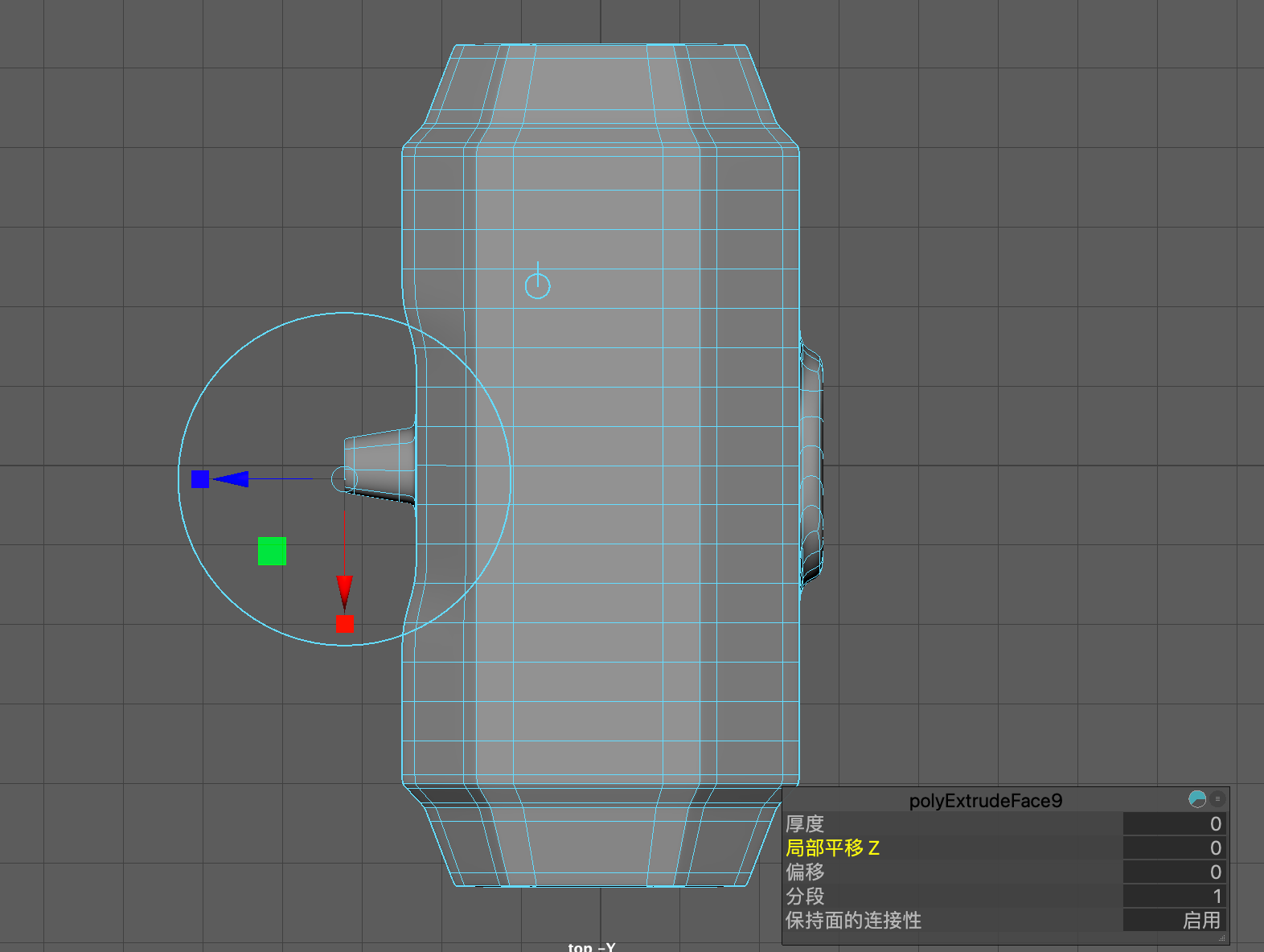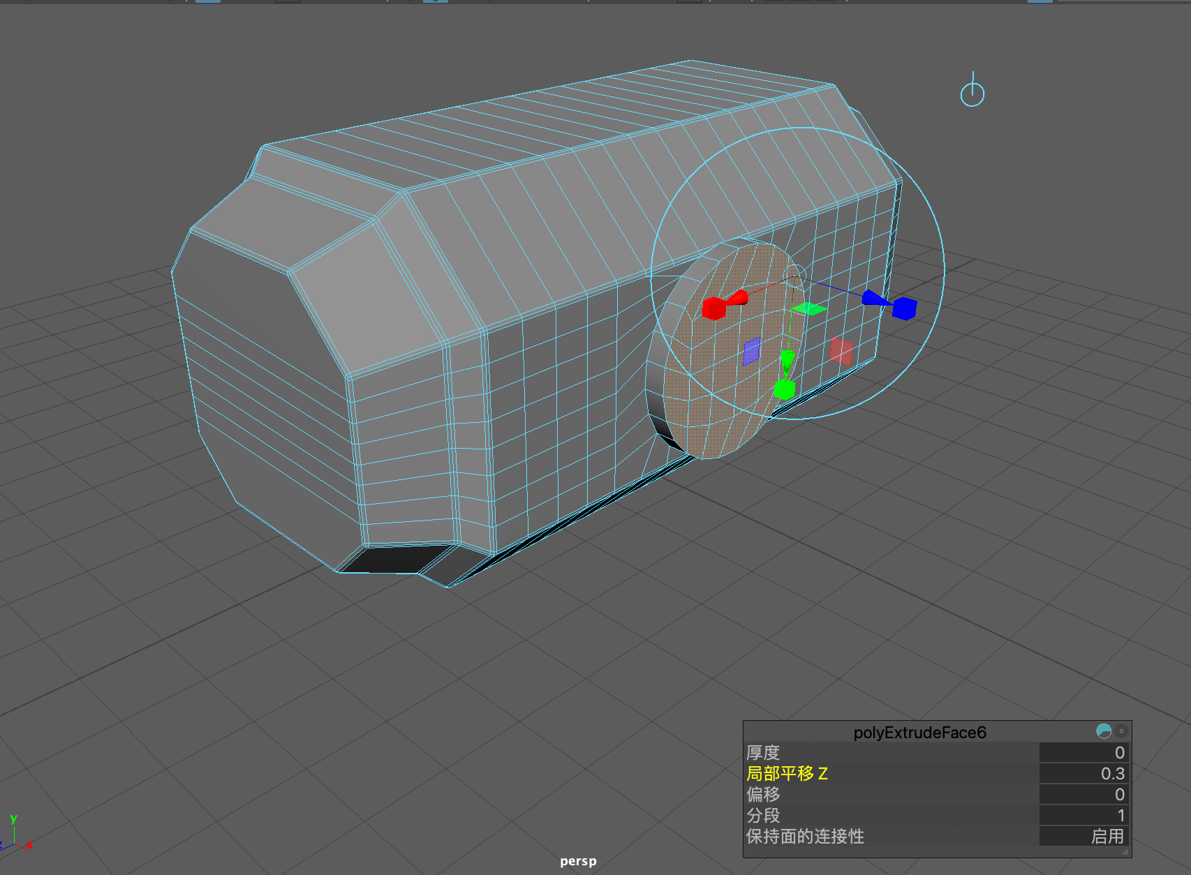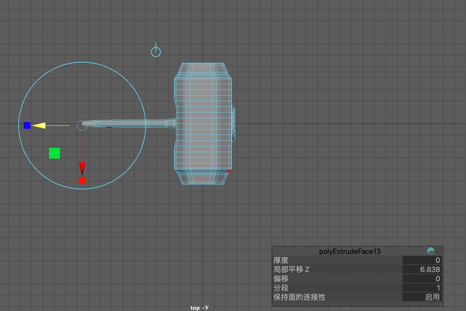 (15)对所选择的面使用"挤出"工具进行多次挤出操作,并配合"缩放工具",制作出锤子的手柄结构,如图3-171所示。