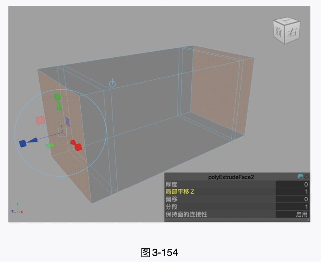 (4)选择图3-153所示的两个面,对其进行挤出操作,制作出图3-154所示的模型