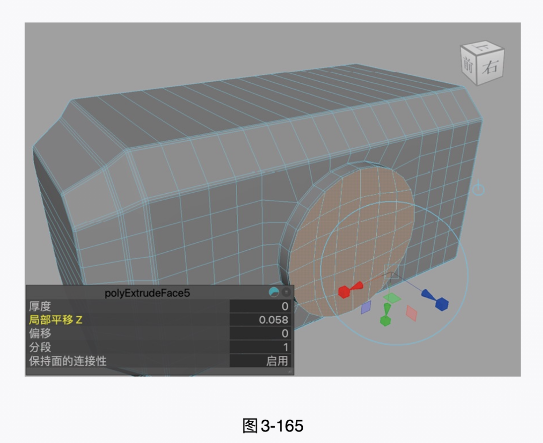 (11)使用"挤出"工具对所选择的面进行多次挤出操作,制作出图3-165所示的模型。
