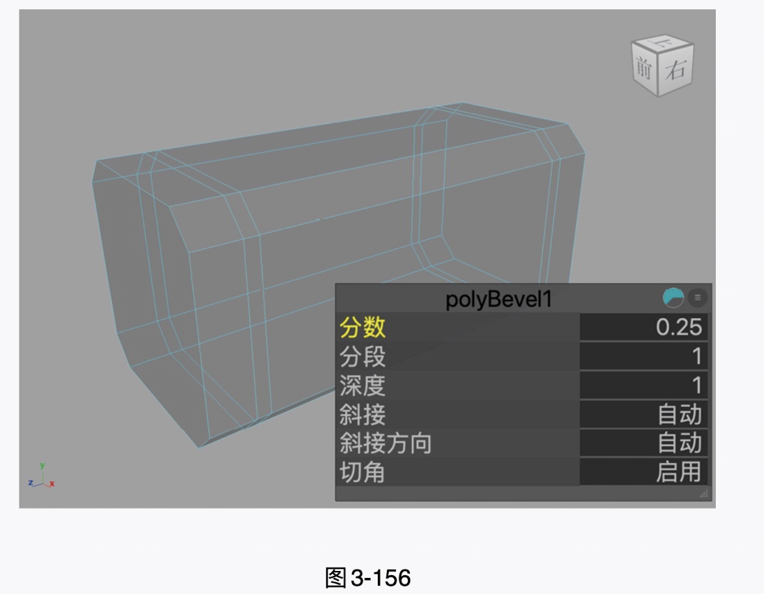 (5)选择图3-155所示的边,对其进行倒角操作,制作图3-156所示的模型效果。