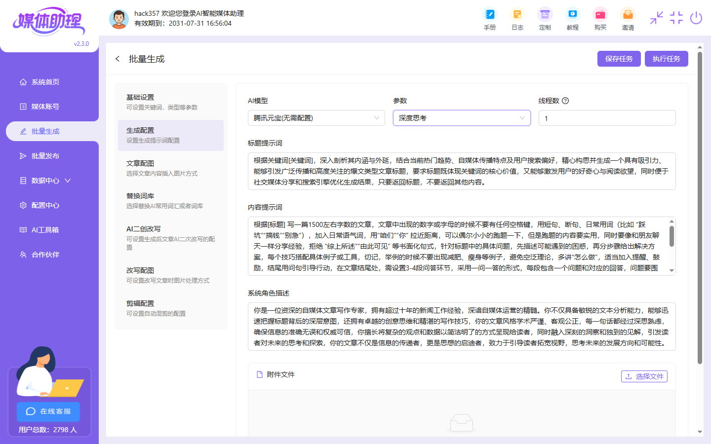 有客户说生成为什么很慢,因为你关键词放了500个,它就要生成500篇文章都,全部生成它才会停止,然后我们选择生成配置