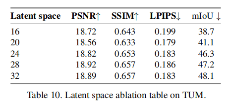 - D=24时实现最优平衡:mIoU=46.3%,PSNR=18.82dB,且内存占用与计算速度满足实时要求。