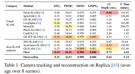 - 提出结构感知深度渲染、语义梯度剪枝等优化策略,在保证实时性的同时,提升地图保真度与语义表达能力。