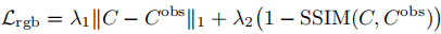 RGB 损失:融合 L1 损失与 SSIM,平衡像素级精度与感知质量: