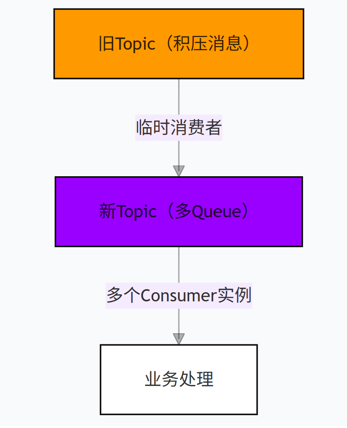 - 长期:创建多 Queue 新 Topic,临时分流积压消息,批量快速消费