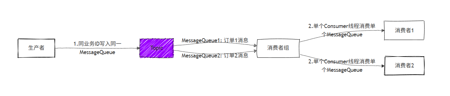 - 生产者:通过分区算法将同业务标识消息写入同一 MessageQueue