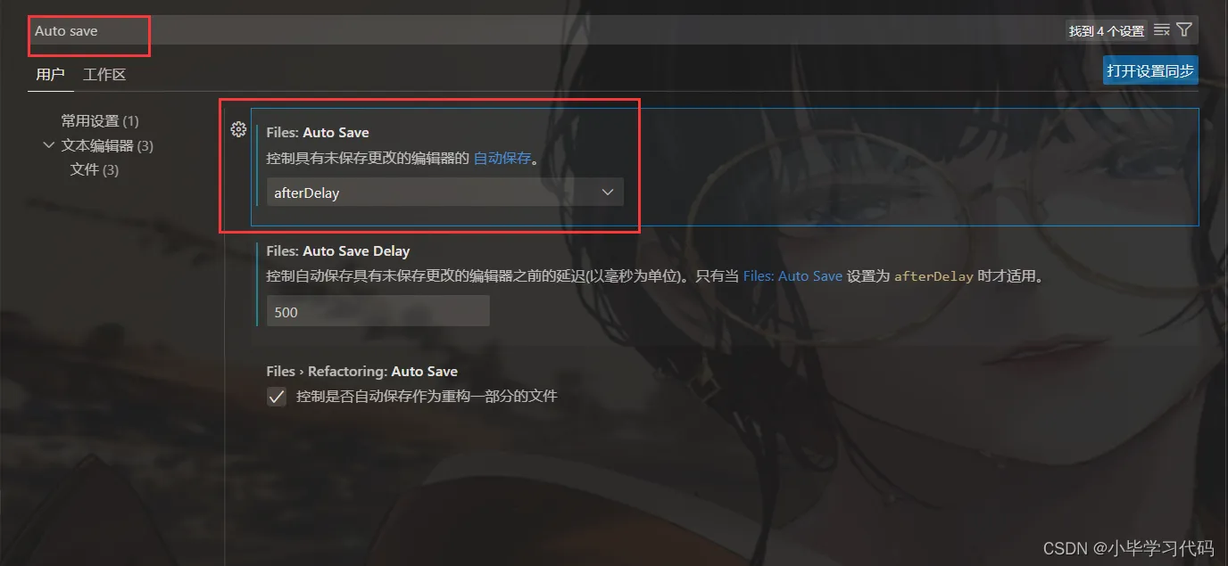 在上方搜索Auto save