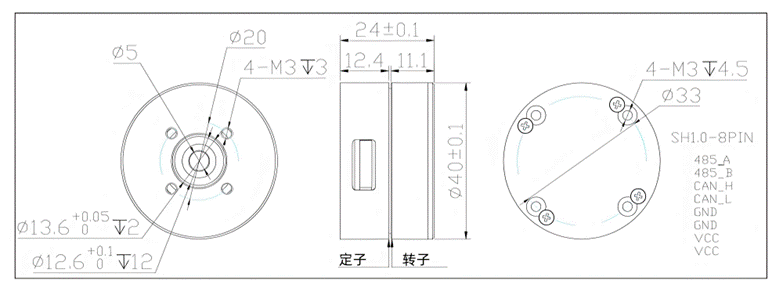 - 扭矩密度高:通过减速器增扭,单驱动单元可实现5~200N・m扭矩输出,适配人形机器人各关节负载需求;