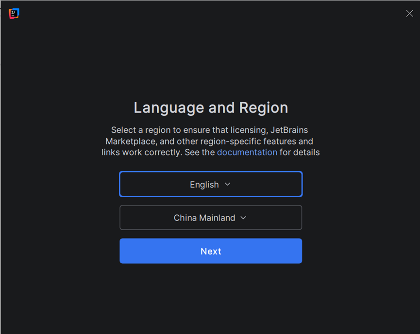 启动IntelliJ IDEA后,弹出区域选择对话框。