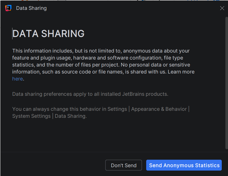 按照默认选项,点击Send Anonymous Statistics(发送匿名统计信息)。