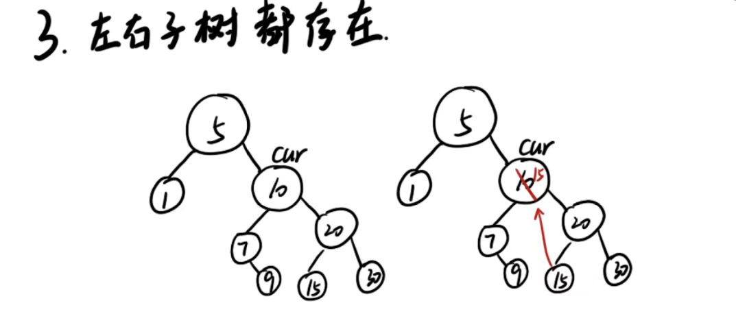 情况3:待删除节点(cur)左右子树均存在