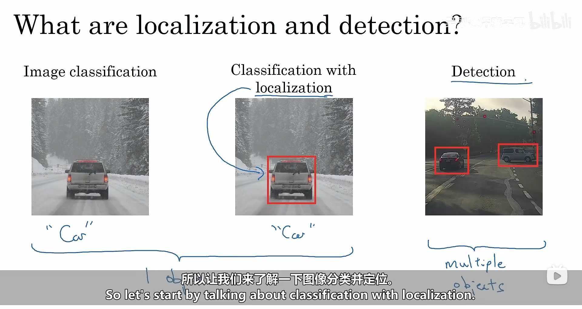 我们常见图像分类,图像中单个标签分类及定位以及对象检测,如下图所示: