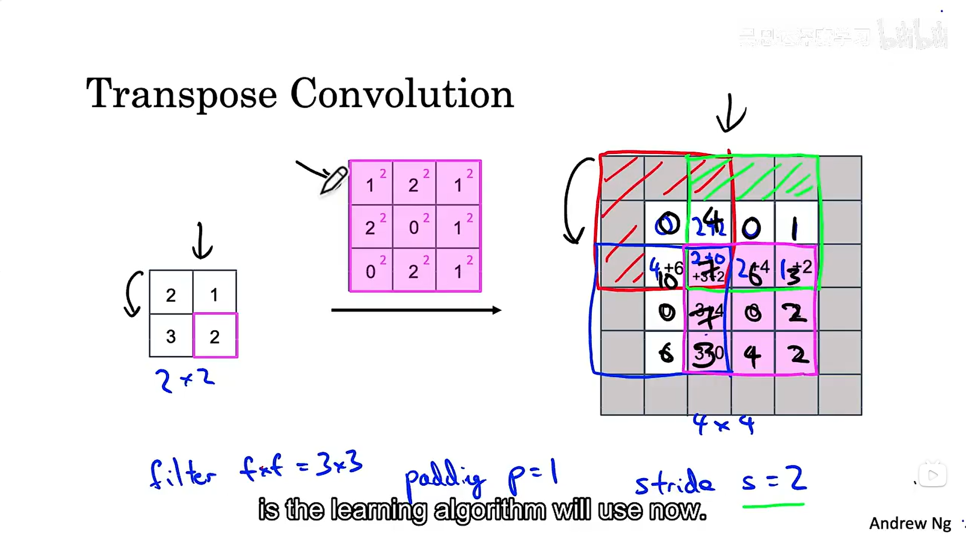 整个操作总结下来就是对原图像中的每个部分都进行卷积操作,填充部分不进行卷积,卷积有重叠的部分就进行相加,滑动到悬挂位置不进行卷积。
