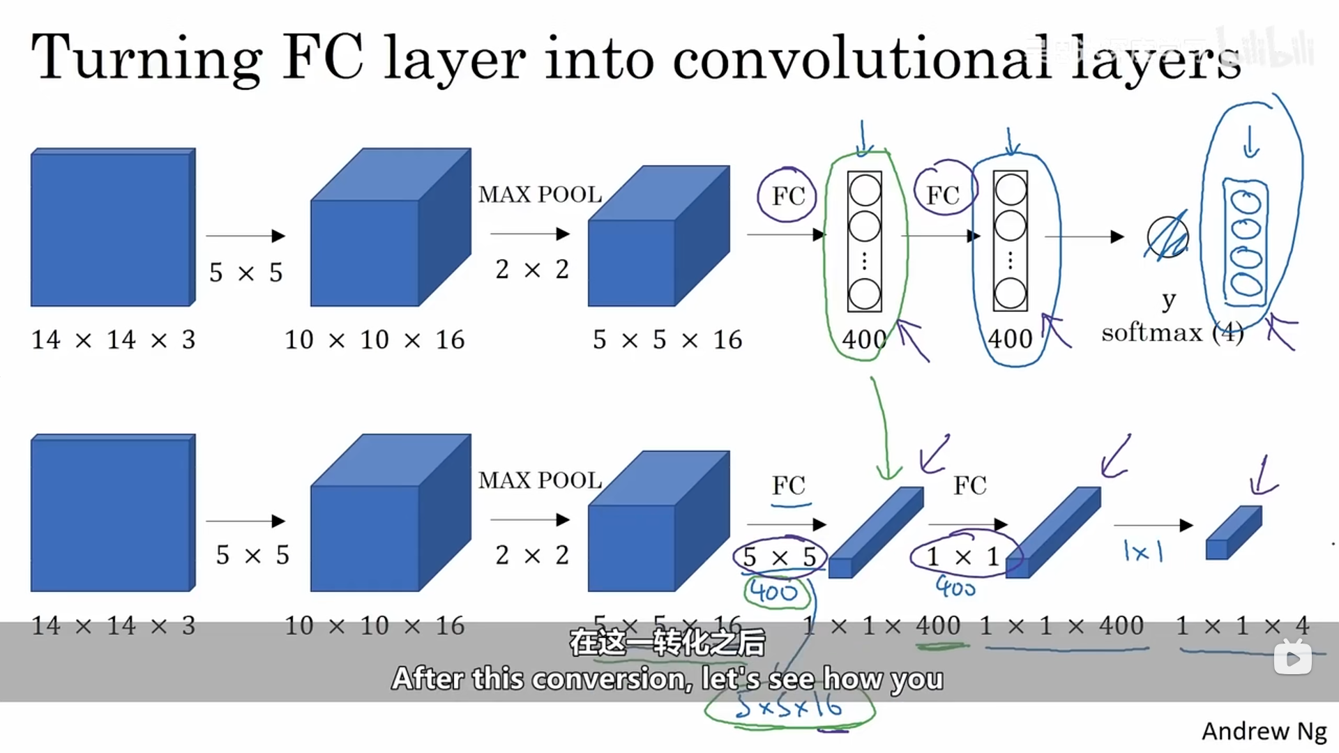 在卷积网络中的后面部分也就是全连接网络部分,我们可以将这部分修改为卷积网络,如下图所示: