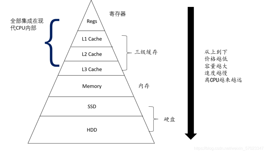 数据从硬盘(容量大、速度慢)运送到容量小速度快的CPU进行运算,并在运算完输送回硬盘。