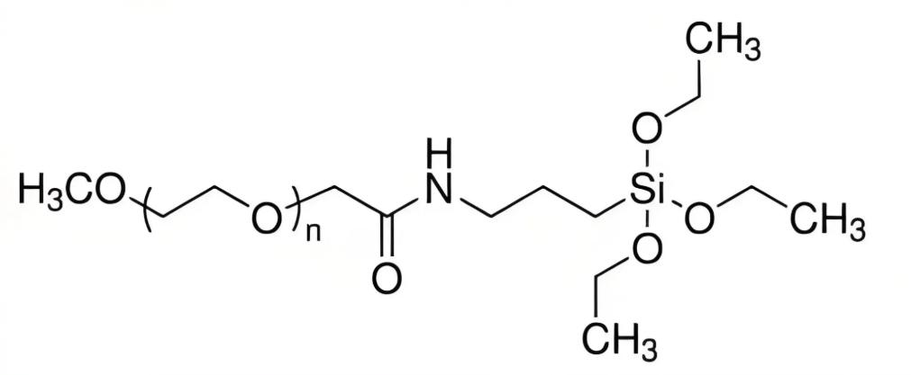 连接臂单元:通常为短链烷基,起到连接 mPEG链与硅烷基团的作用,既保障了两者的连接稳定性,又能降低空间位阻,确保硅烷基团的水解与缩合反应效率,同时不影响PEG链的亲水性能。