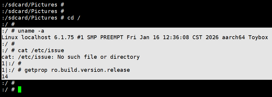 Linux localhost 6.1.75 #1 SMP PREEMPT Fri Jan 16 12:36:08 CST 2026 aarch64 Toybox