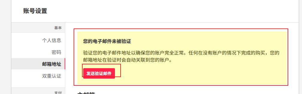 - 然后我们还需要进验证一下你的电子邮箱,你在个人中心的邮箱设置那里点击就好了