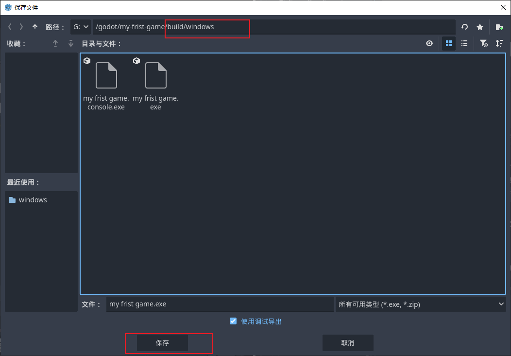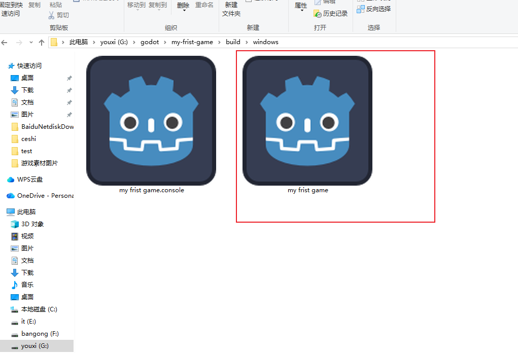 .pck 合并,生成单一的可执行文件。将导出的文件整理到指定的 build/windows 目录中,得到可直接分发的 .exe 游戏文件。 -