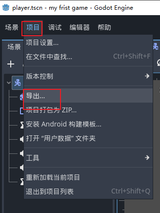 - 安装完成之后,我们可以来到我们的左上角项目那里点击导出