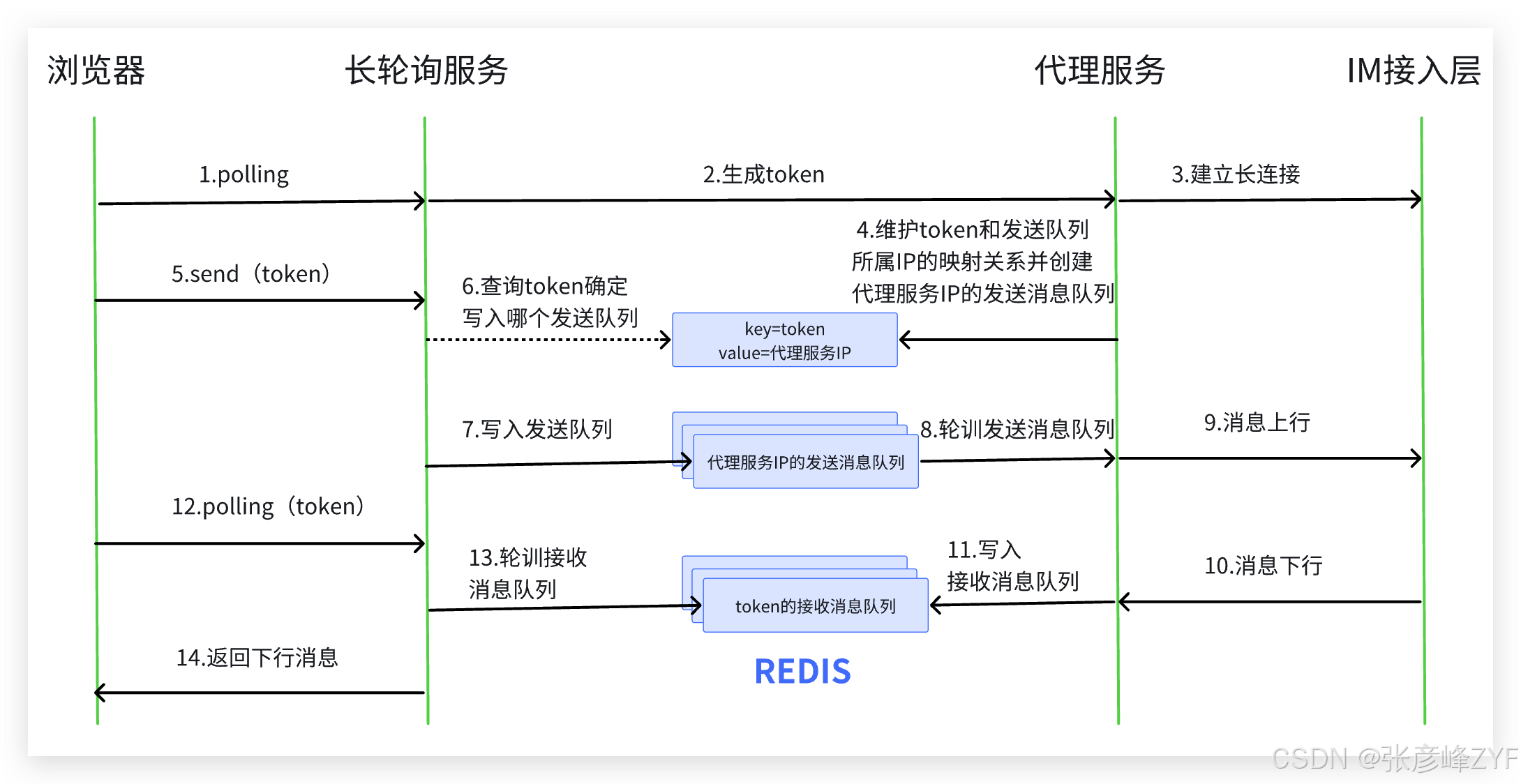 通过上述数据结构,长轮询服务无需直接感知 IM 长连接的具体状态,只需围绕 token 与缓存数据进行操作,即可完成消息的收发与响应返回。