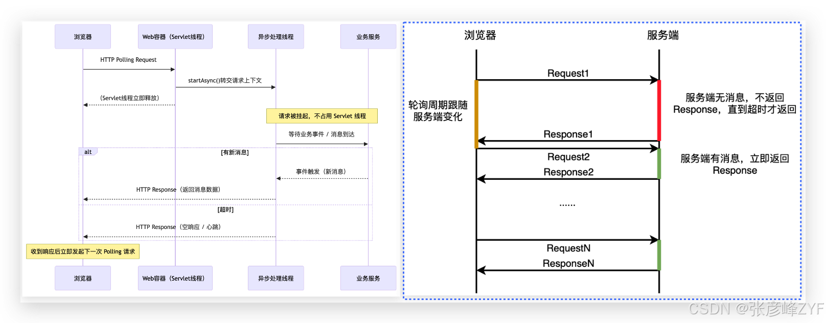 | 服务端返回时机 | 立即 | 有事件或超时 |