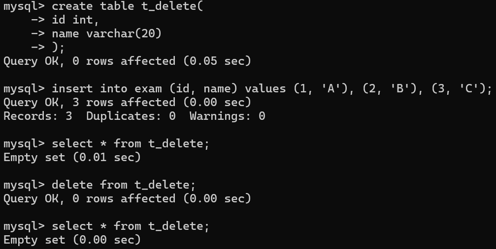 delete from t_delete;