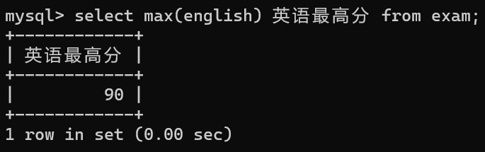 select max(english) 英语最高分 from exam;