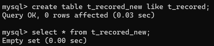 mysql> CREATE TABLE t_recored (id int, name varchar(20));
