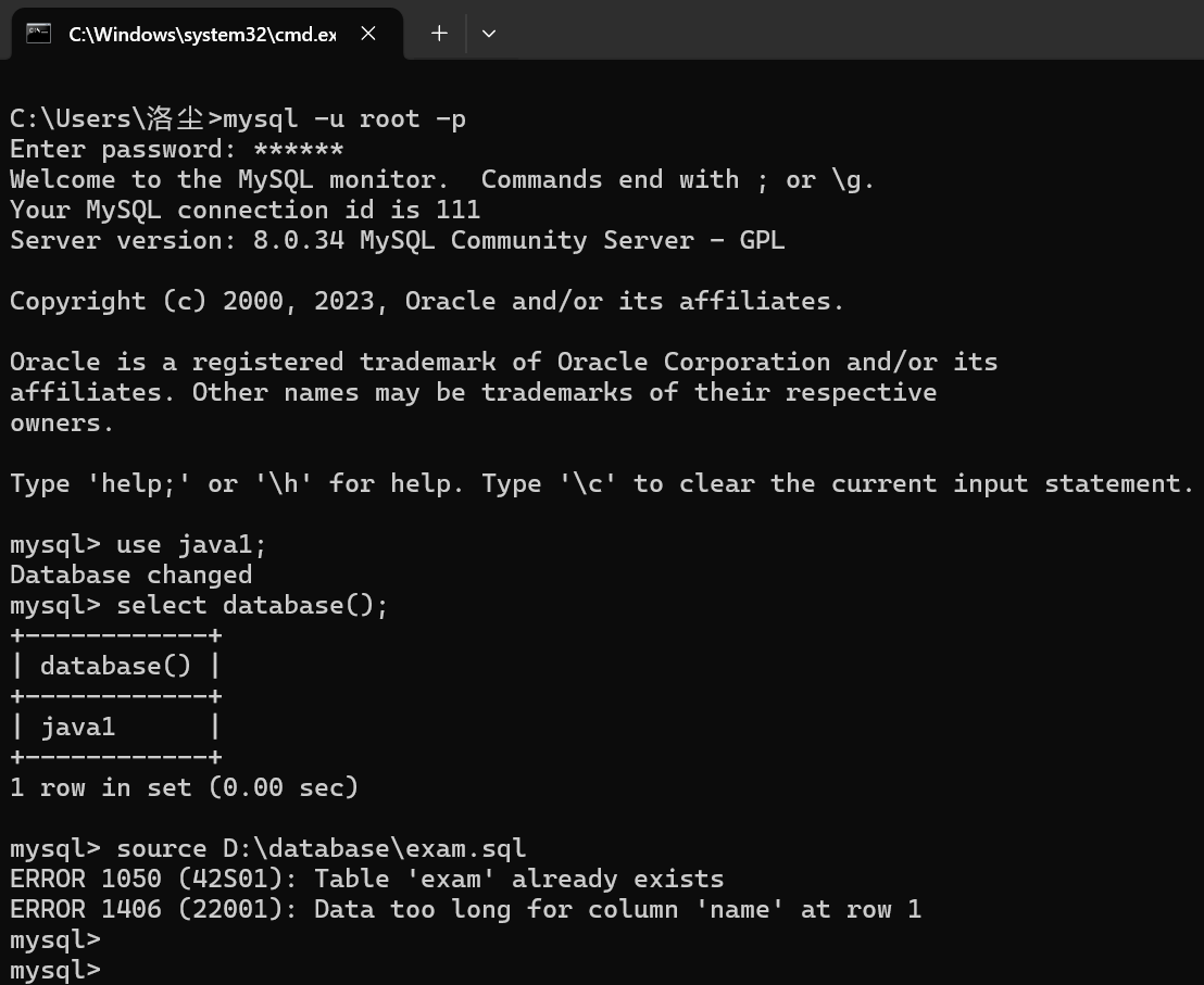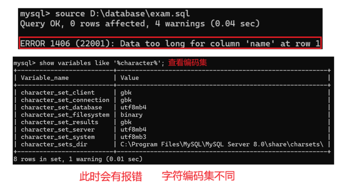 刚才已经通过Navicat导入过sql,所以此时仅有一个错误才正确,但仍有字符编码错误,可能有其他错误,暂时不管了。
