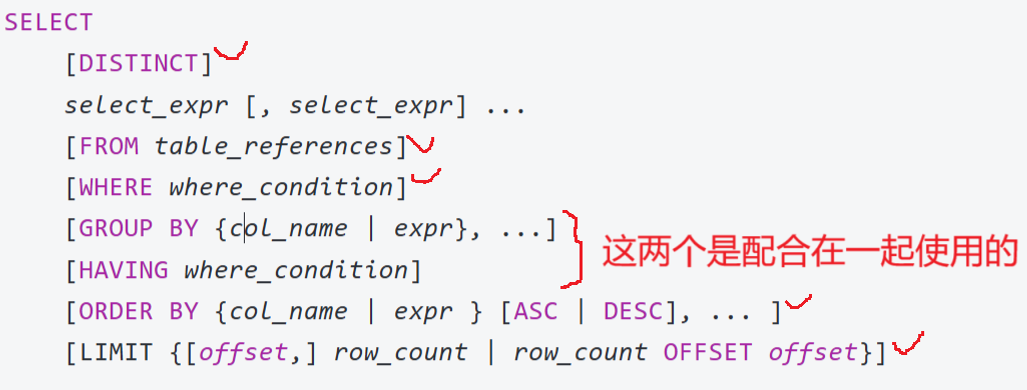 使用GROUP BY 对结果进行分组处理之后**,对分组的结果进行过滤** 时,不能 使用WHERE子句,而要使用HAVING 子句。