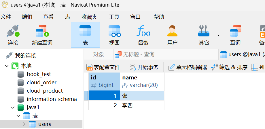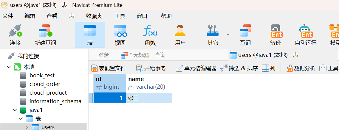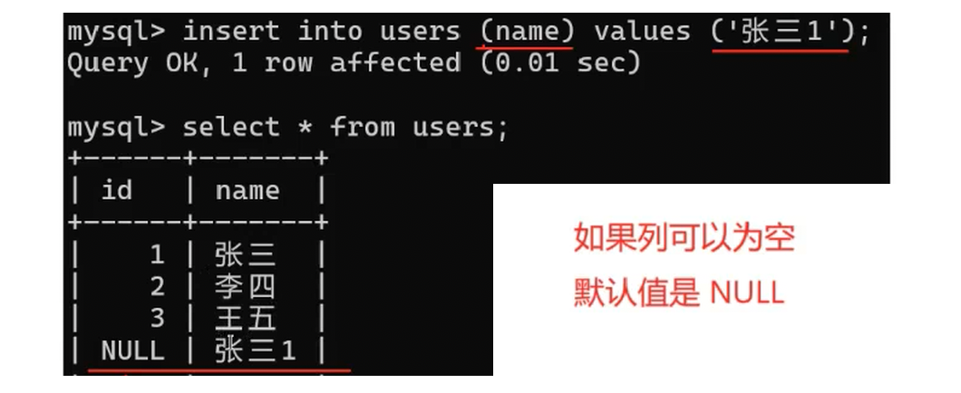 insert into users values(1, '张三');