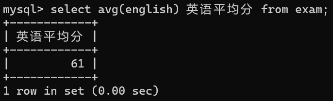 select avg(english) 英语平均分 from exam;