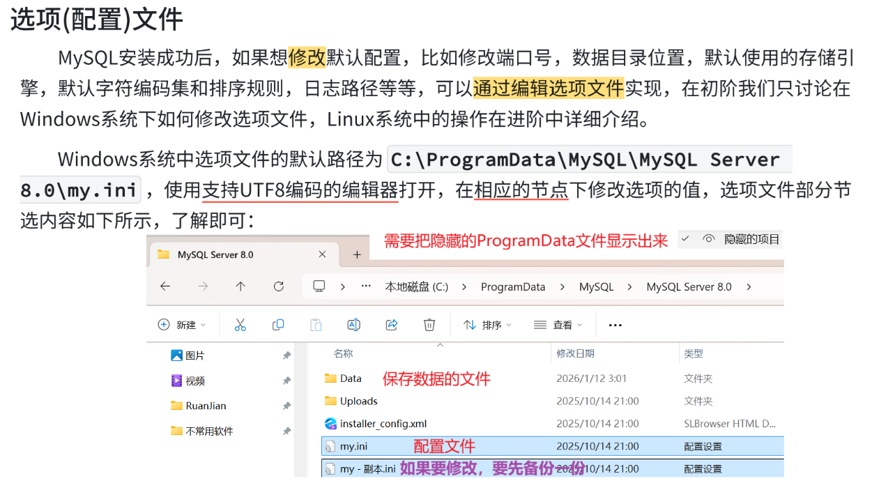 点击my.ini修改文件,第63行,改完后保存并重启MySQL