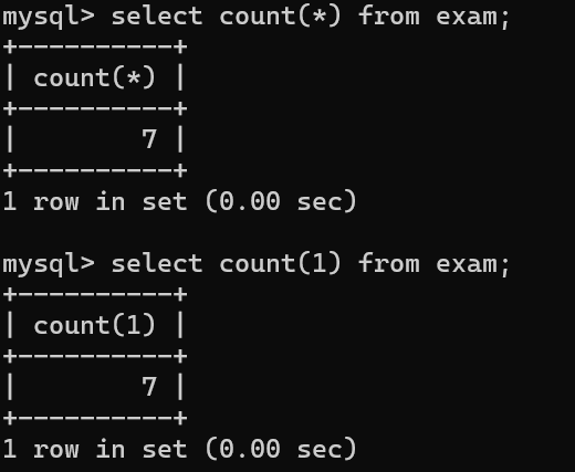 select count(1) from exam;