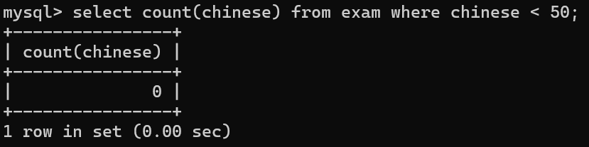 select count(chinese) from exam where chinese < 50;