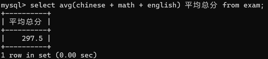 select avg(chinese + math + english) 平均总分 from exam;