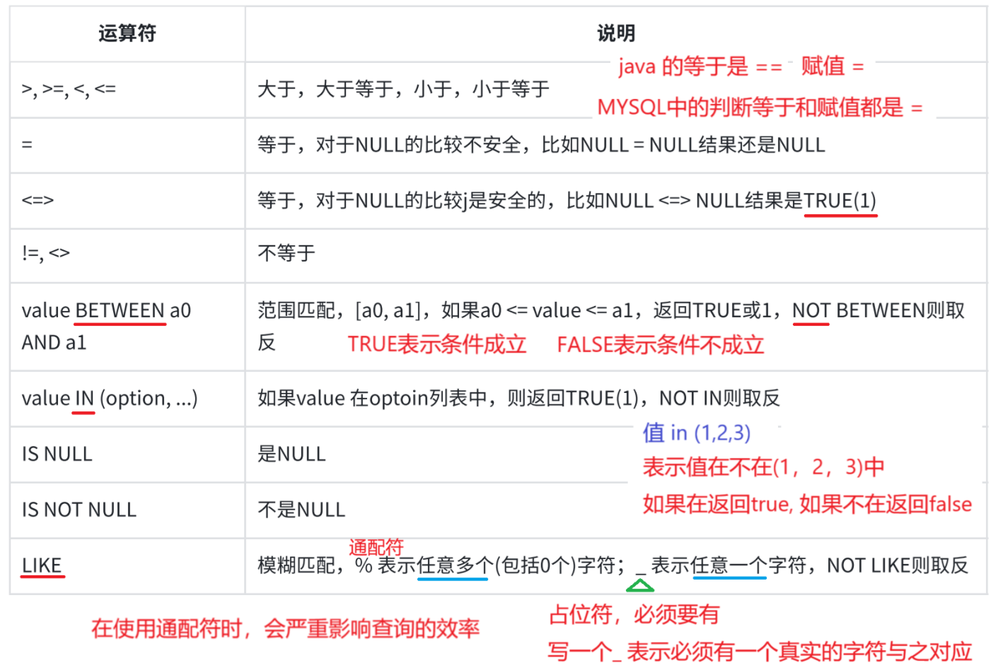 (1)比较运算符