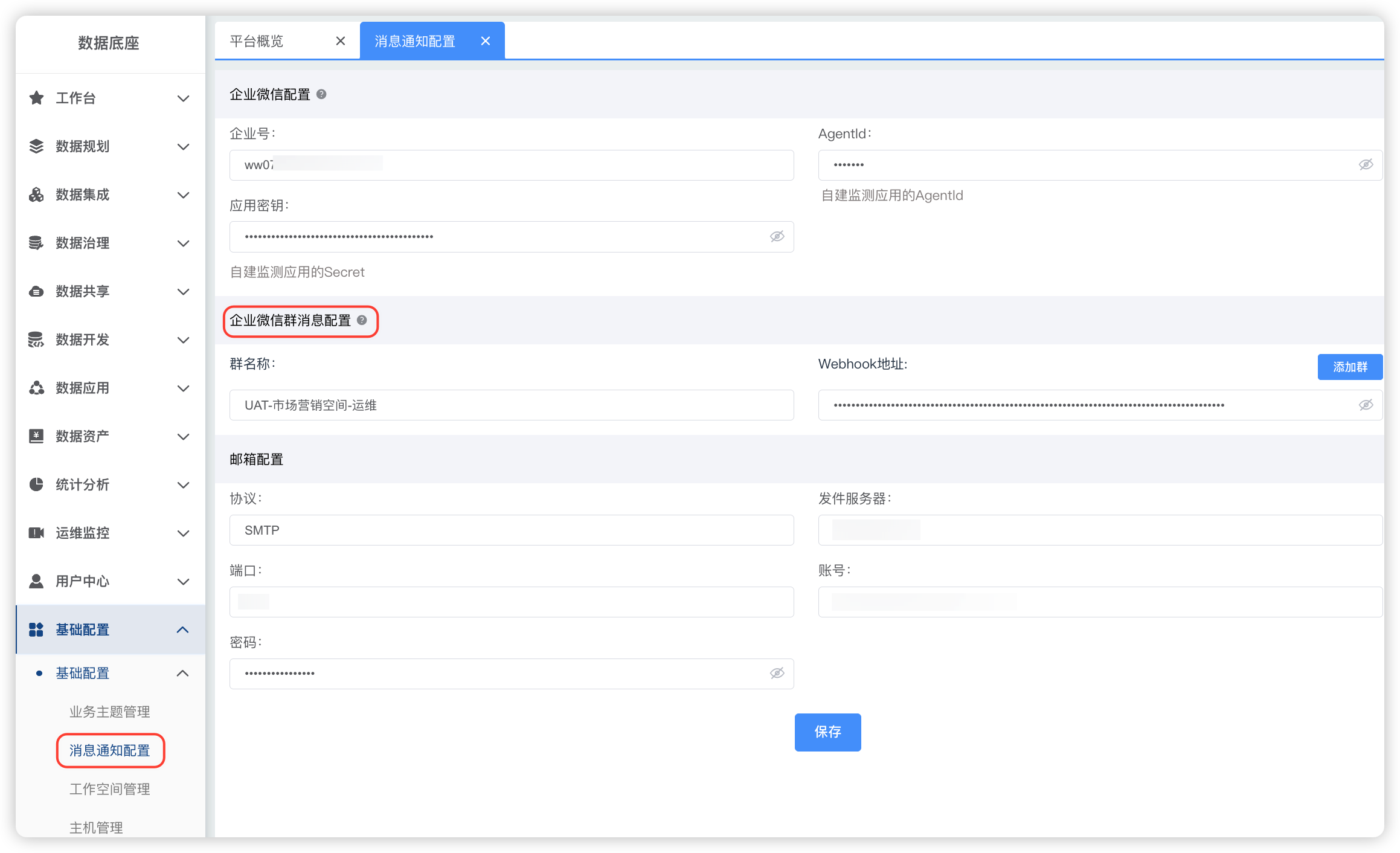 安全强化:对AgentID、密钥、Webhook地址、邮箱密码等敏感信息采用脱敏显示,提升系统信息安全性。