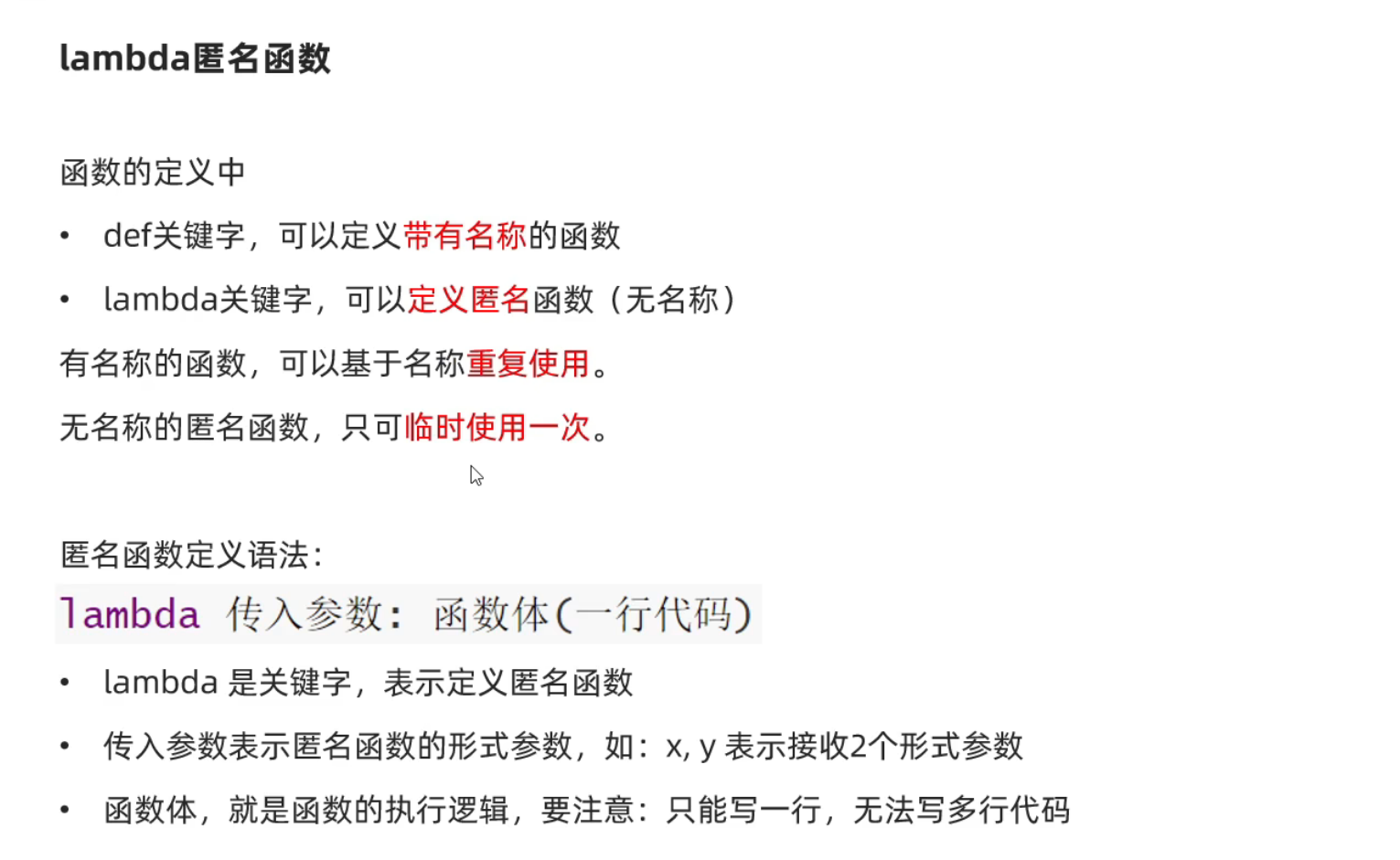 lambda关键字用于定义匿名函数(无名称函数):