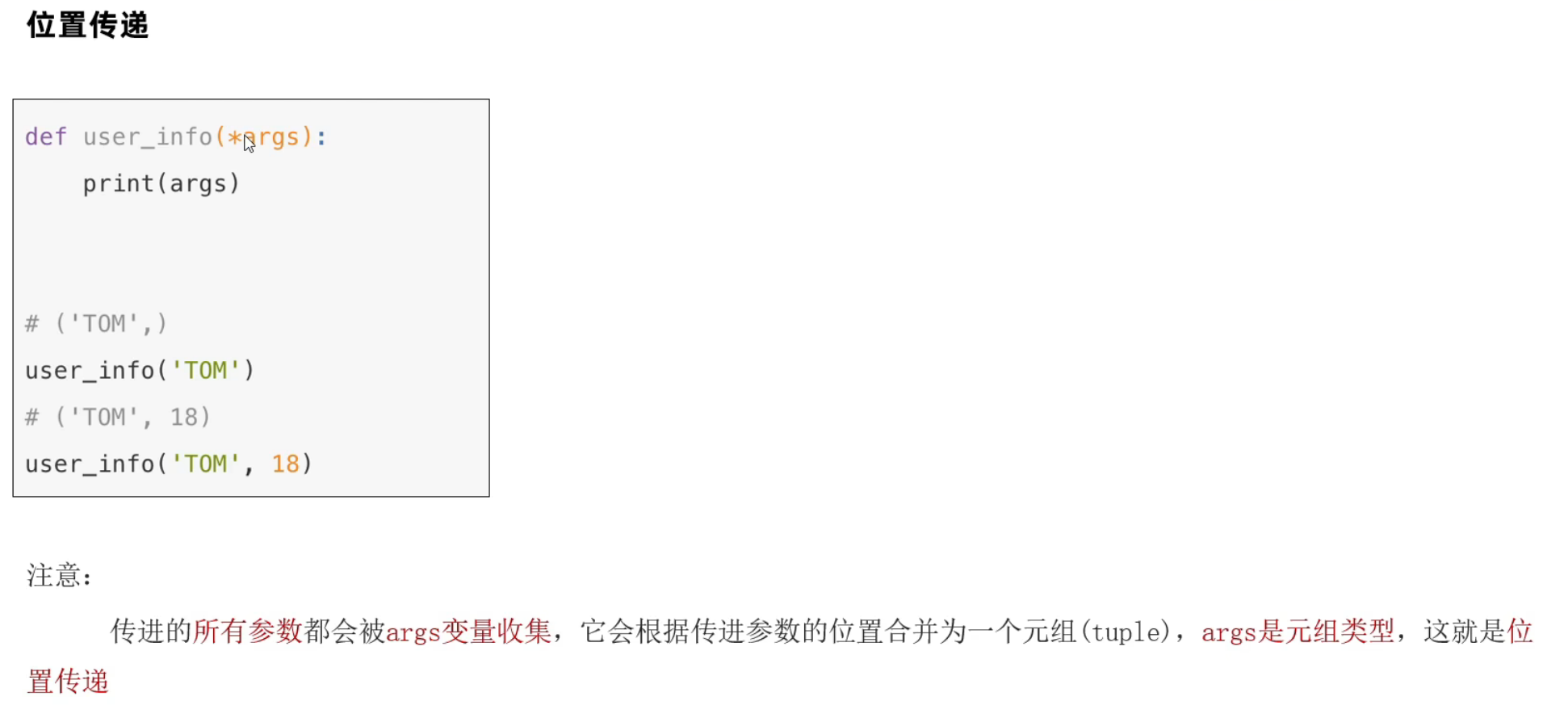 位置传递(*args)