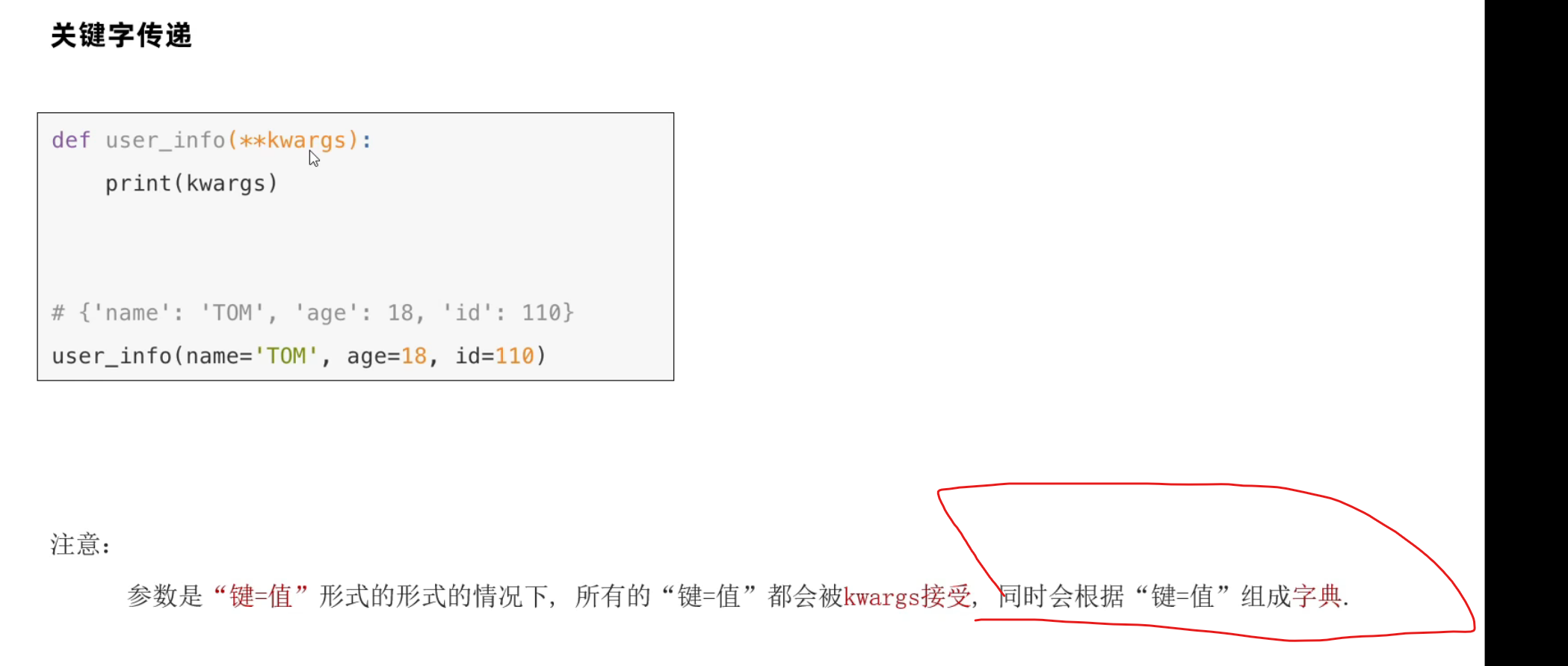 关键字传递(**kwargs)