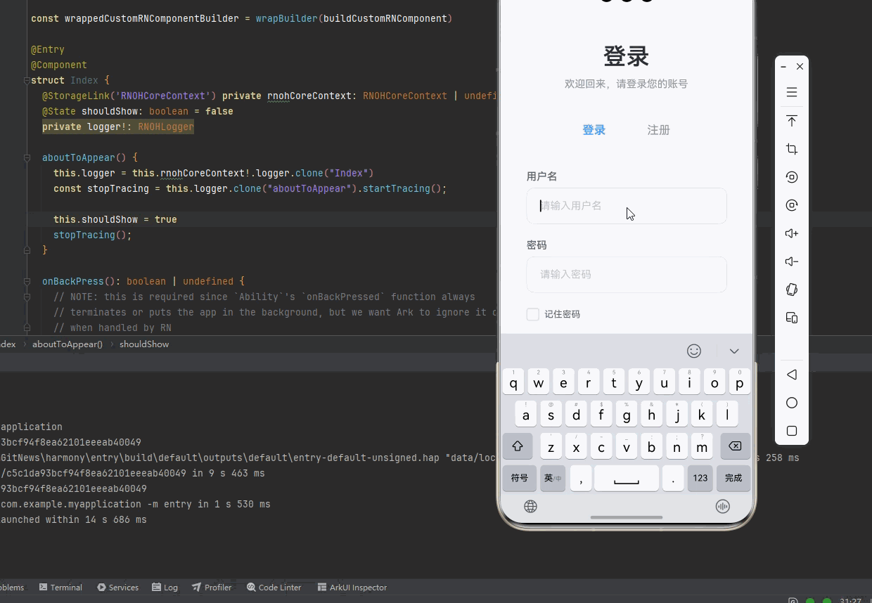 RN 原生输入框组件,实现用户名、密码、验证码等输入 | ✅ 鸿蒙端输入框正常,支持数字键盘,无兼容问题 |