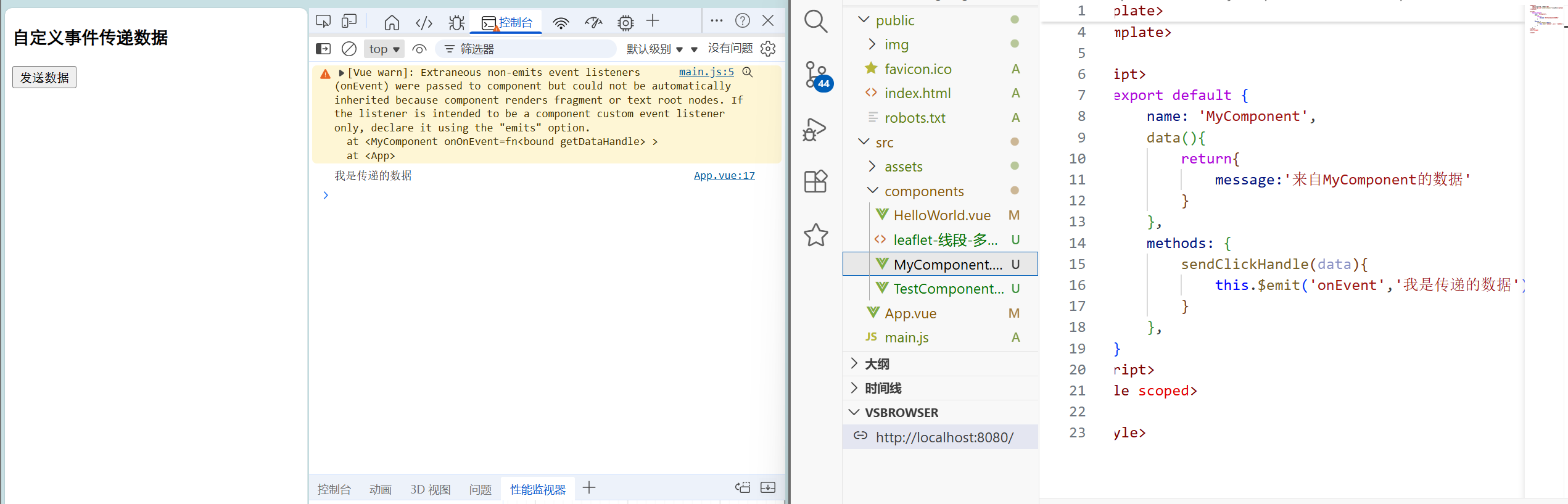自定义事件可以在组件中反向传递数据,prop可以将数据从父组件传递到子组件,那么反向如何操作呢,就可以利用自定义事件实现 $emit