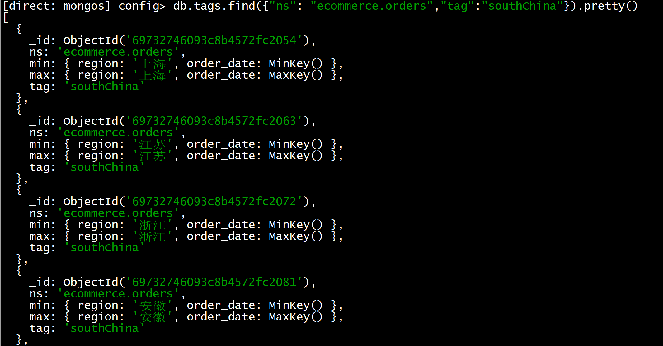 db.tags.find({"ns": "ecommerce.orders","tag":"southChina"}).pretty()