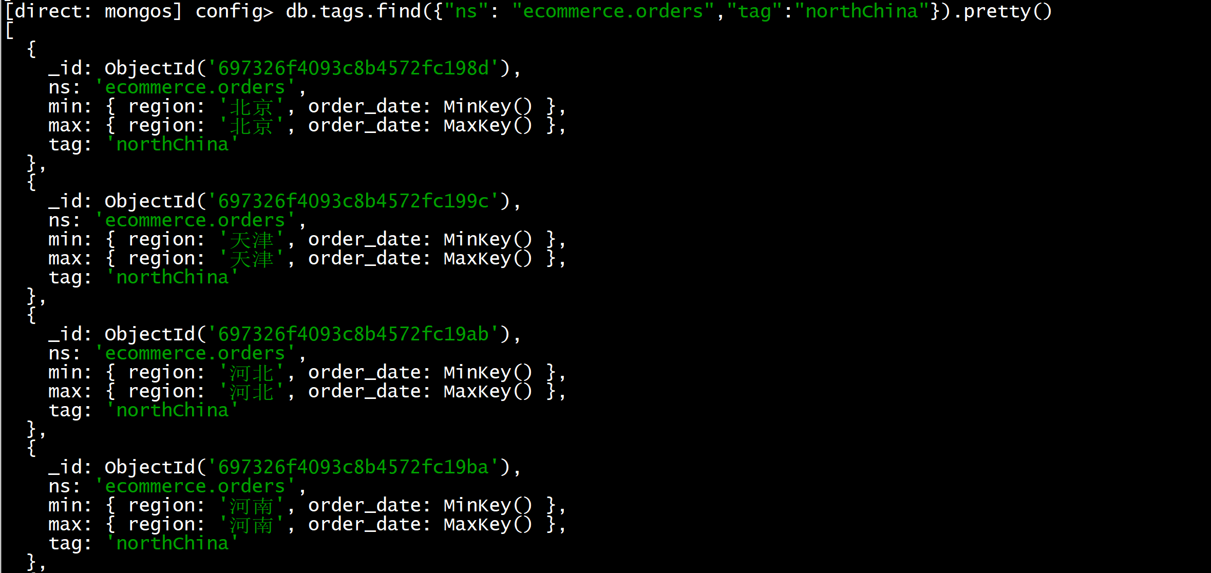 db.tags.find({"ns": "ecommerce.orders","tag":"northChina"}).pretty()